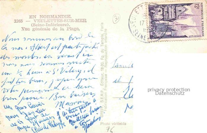 14109538 Veulettes-sur-Mer DIEPPE 76 Seine-Maritime Vue générale de la plage postalisch gelaufen Erhaltung siehe scans [FriedD77] carte postale Frie Katcode 11170076176736