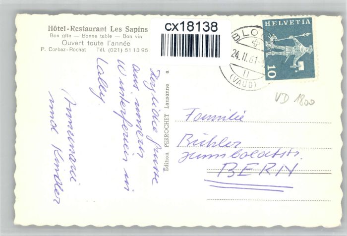 10724300 alte Postkarte Vevey VD Vevey Hotel Restaurant Les Sapins postalisch gelaufen KatCode: 11470240845894