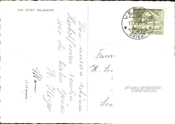 11853590 alte Postkarte Vevey VD Vue generale postalisch gelaufen Erhaltung siehe scans KatCode: 11470240845894