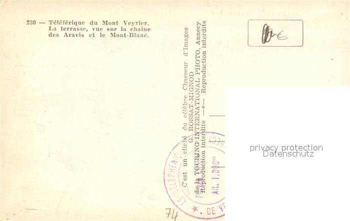 13488898 Veyrier-du-Lac Téléférique du Mont Veyrier Terrasse Chaîne des Aravis et le Mont Blanc Alpes postalisch nicht gelaufen Erhaltung siehe scans [FriedD77] KatCode: 11170074174299