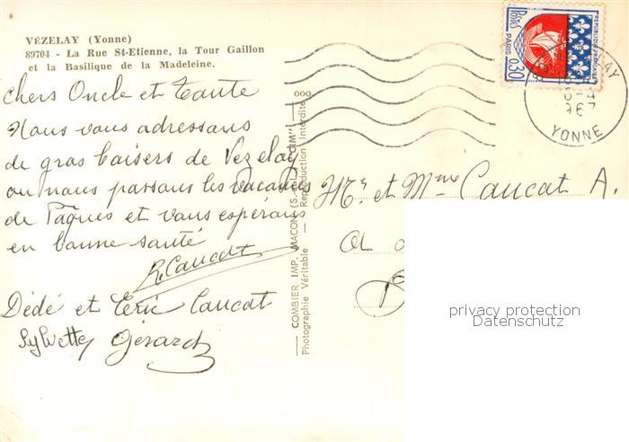 13767471 Vezelay 89 La Rue St Etienne la Tour Gaillon et la Basilique de la Madeleine postalisch gelaufen Erhaltung siehe scans [WerneD78] carte postale Wern Katcode 11170089289446