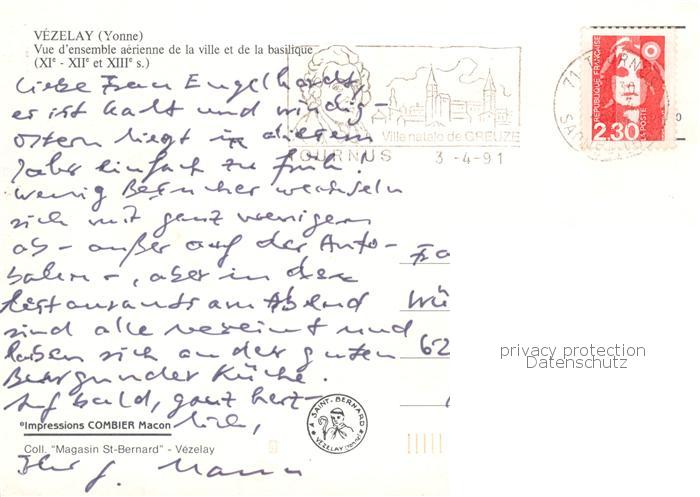 13788906 Vezelay 89 Vue d ensemble de la ville et de la basilique vue aérienne postalisch gelaufen Fliegeraufnahme Erhaltung siehe scans [FriedD77] Fliegeraufnahme carte postale Frie Katcode 11170089289446