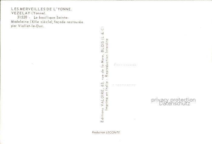 12459752 Vezelay Basilique Sainte Madeleine facade restauree par Viollet le Duc postalisch nicht gelaufen Erhaltung siehe scans KatCode: 11170089289446