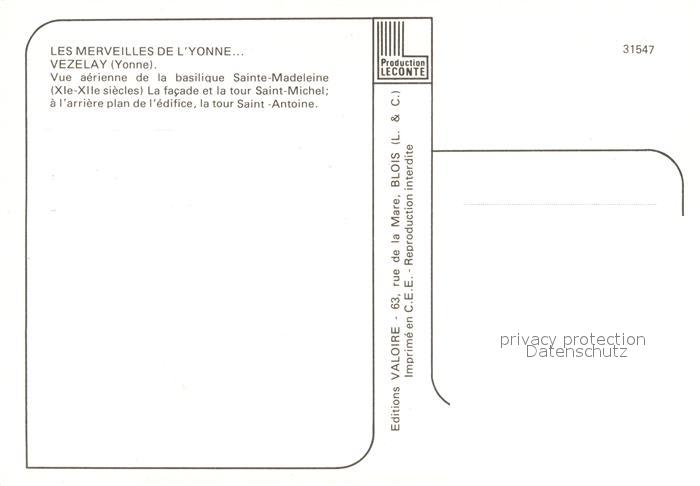 13224085 Vezelay Basilique Sainte Madeleine vue aérienne postalisch nicht gelaufen Erhaltung siehe scans [FriedD77] KatCode: 11170089289446