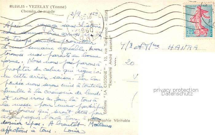 13586223 Vezelay Chemin de ronde postalisch gelaufen Erhaltung siehe scans [WerneD78] carte postale Wern Katcode 11170089289446