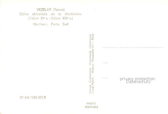 13310318 Vezelay Eglise abbatiale de la Madeleine Porte Sud postalisch nicht gelaufen Erhaltung siehe scans [FriedD77] KatCode: 11170089289446