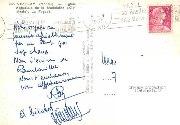 12769789 carte postale Vezelay Eglise Abbatiale Madeleine postalisch gelaufen Erhaltung siehe scans [NatalD47] KatCode: 11170089289446