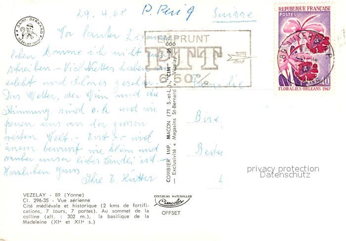 13288962 carte postale Vezelay Fliegeraufnahme postalisch gelaufen Erhaltung siehe scans [KathaD81] KatCode: 11170089289446