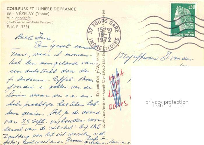 12896495 carte postale Vezelay Fliegeraufnahme postalisch gelaufen Erhaltung siehe scans [LiesaD40] KatCode: 11170089289446