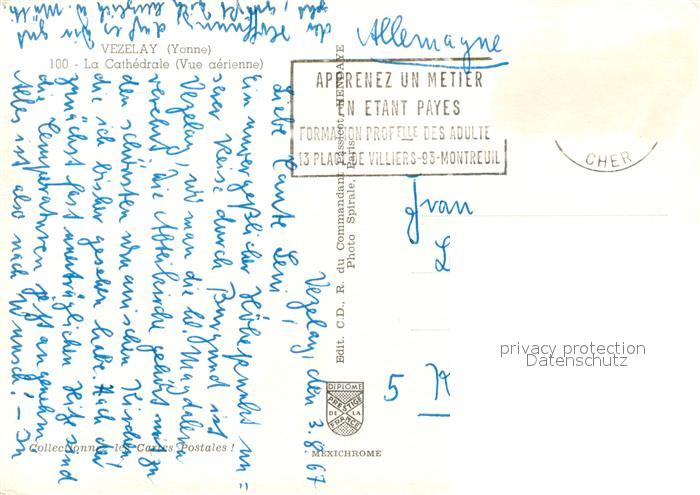 13721942 Vezelay Fliegeraufnahme Kathedrale postalisch gelaufen Erhaltung siehe scans [LiesaD40] carte postale Lies Katcode 11170089289446