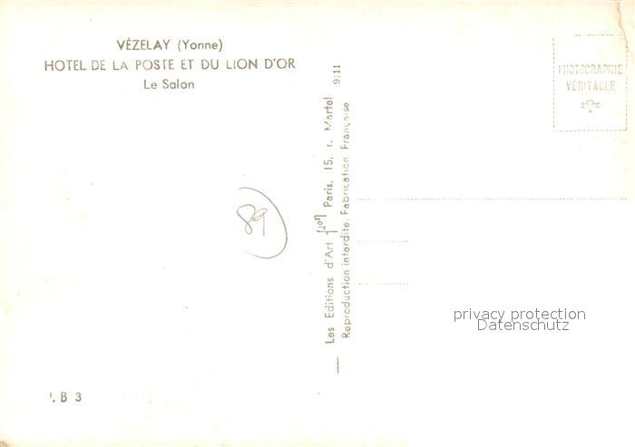 13153114 Vezelay Hotel de la Poste et du Lion D`or Salon postalisch nicht gelaufen Erhaltung siehe scans [LiesaD40] KatCode: 11170089289446
