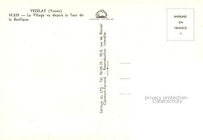 13512290 Vezelay Le Villagevu depuis la Tour de la Basilique Vue aerienne postalisch nicht gelaufen Erhaltung siehe scans [WerneD78] KatCode: 11170089289446