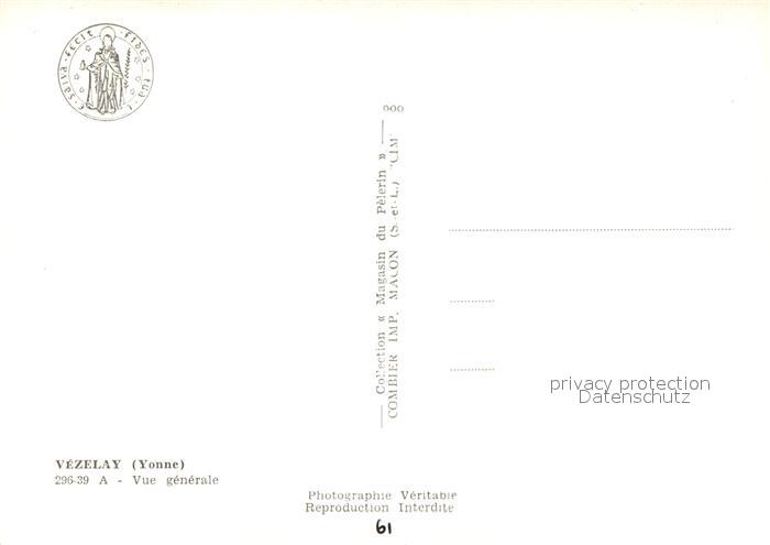 13533214 Vezelay Vue aérienne postalisch nicht gelaufen Erhaltung siehe scans [FriedD77] KatCode: 11170089289446