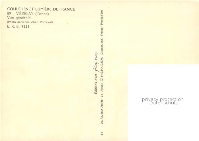 13243817 Vezelay Vue aérienne postalisch nicht gelaufen Erhaltung siehe scans [FriedD77] KatCode: 11170089289446