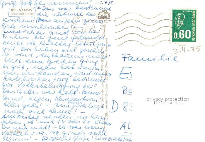 13143767 carte postale Vezelay Vue aerienne postalisch gelaufen Erhaltung siehe scans [FriedD77] KatCode: 11170089289446