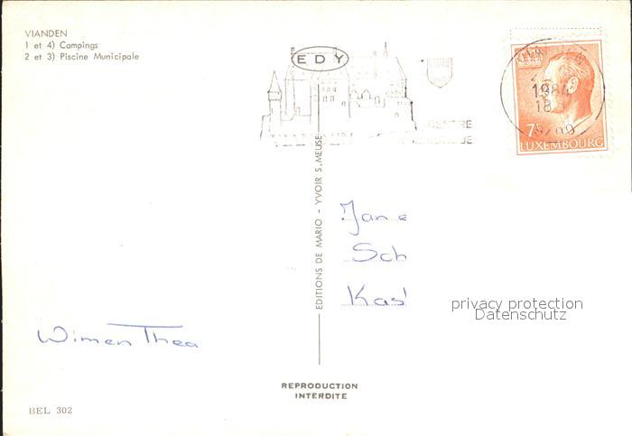 alte Postkarte Vianden Fliegeraufnahmen Freibad postalisch gelaufen Erhaltung siehe scans