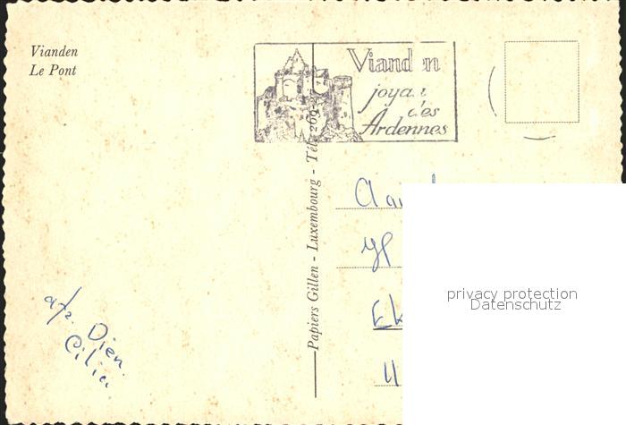 alte Postkarte Vianden Pont Chateau postalisch gelaufen Erhaltung siehe scans