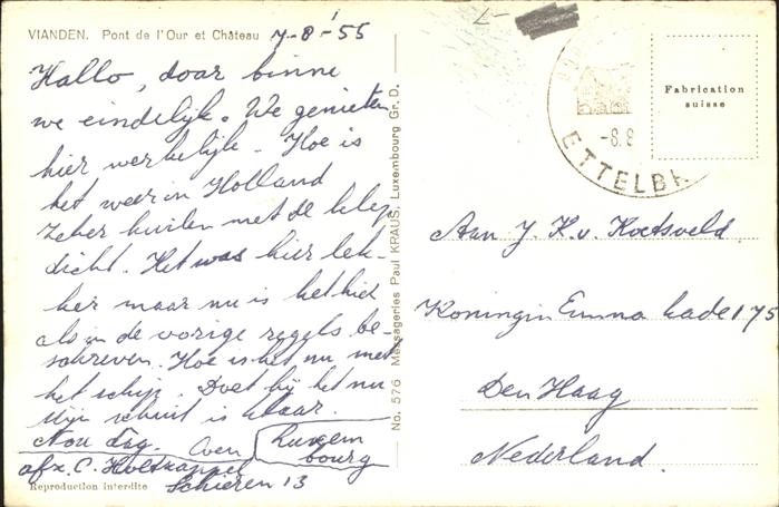 alte Postkarte Vianden Pont de l’Our et Chateau postalisch gelaufen gute Erhaltung