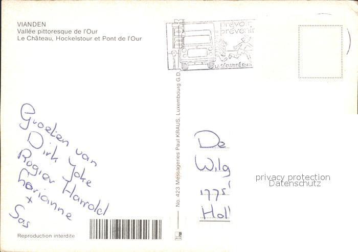 alte Postkarte Vianden Vallee de l’Our Chateau Hockelstour Pont postalisch gelaufen Erhaltung siehe scans
