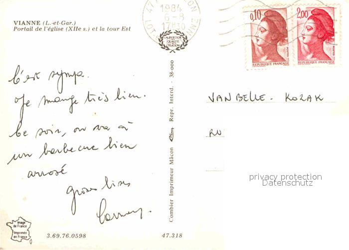 12662856 carte postale Vianne Portail de l’eglise XIIe siecle et la tour l’Est postalisch gelaufen Erhaltung siehe scans [FriedD77] KatCode: 11170047447318