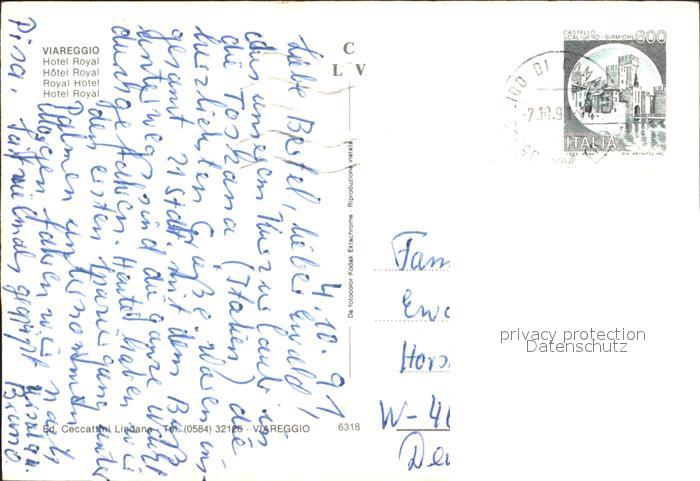 old postcard Viareggio Hotel Royal postalisch gelaufen Erhaltung siehe scans