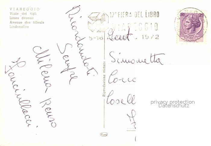 old postcard Viareggio Lindenallee postalisch gelaufen Erhaltung siehe scans [WerneD78]