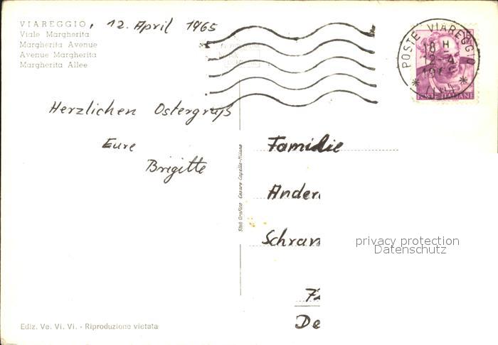 old postcard Viareggio Magherita Allee postalisch gelaufen Erhaltung siehe scans