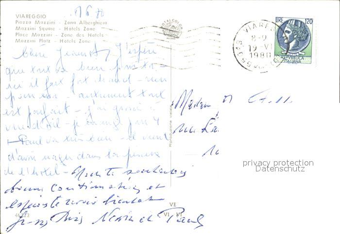 old postcard Viareggio Mozzini Platz American Hotel postalisch gelaufen Erhaltung siehe scans