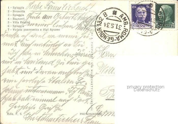 old postcard Viareggio Strand Villa-Puccini postalisch gelaufen Erhaltung siehe scans
