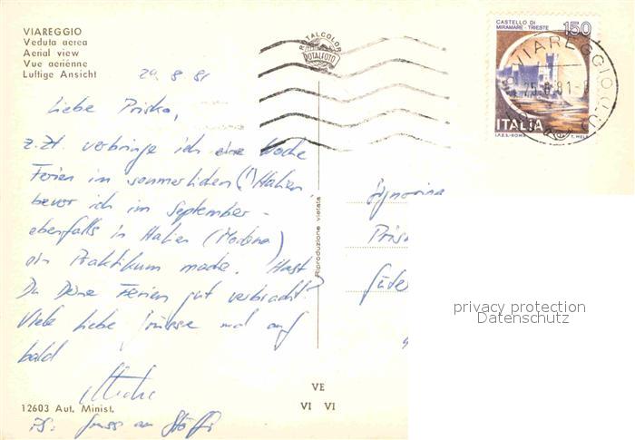 old postcard Viareggio Veduta aerea postalisch gelaufen Erhaltung siehe scans [FriedD77]