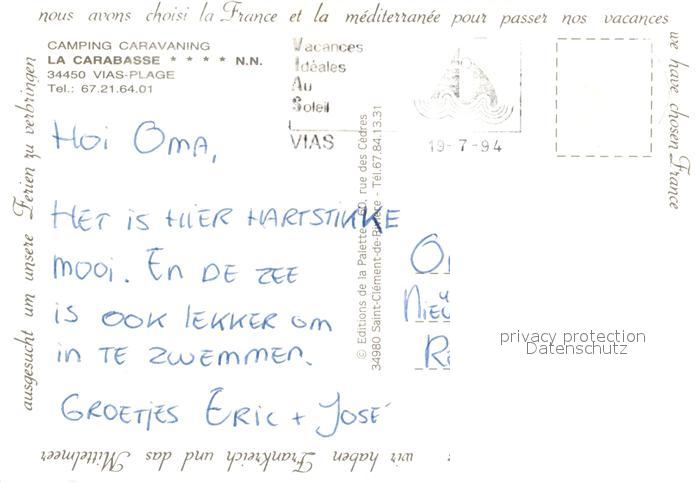 13143187 carte postale Vias Plage Camping Caravaing La Carabasse Air view postalisch gelaufen Erhaltung siehe scans [WerneD78] KatCode: 11170034134332