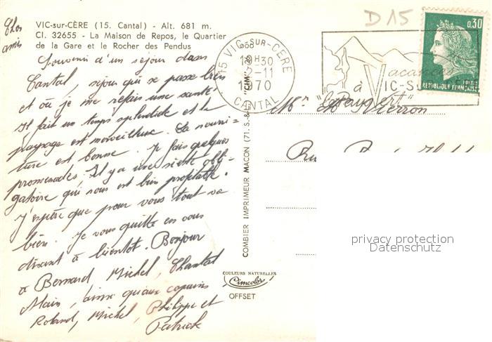 13662394 Vic-sur-Cere La Maison de Repos le Quartier de la Gare et le Rocher des Pendus postalisch gelaufen Erhaltung siehe scans [WerneD78] carte postale Wern Katcode 11170015115258