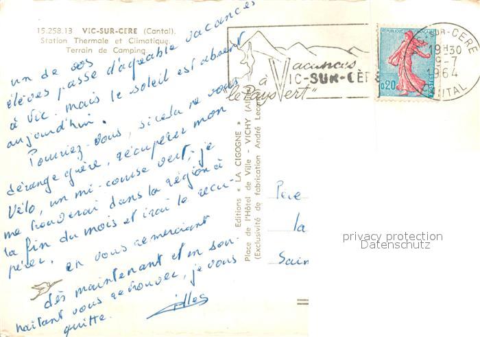 13640309 Vic-sur-Cere Station Thermale et Climatique Terrain de Camping postalisch gelaufen Erhaltung siehe scans [FriedD77] carte postale Frie Katcode 11170015115258