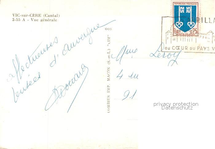 13640363 Vic-sur-Cere Vue aérienne postalisch gelaufen Erhaltung siehe scans [FriedD77] carte postale Frie Katcode 11170015115258