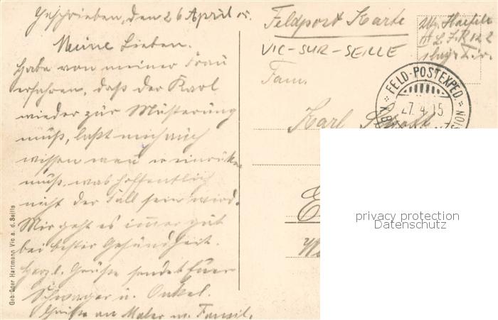 13853229 Vic-sur-Seille 57 Moselle Gesprengte Bruecke 1. Weltkrieg 1914/15 postalisch gelaufen Feldpostexpedition (Stempel) Erhaltung siehe scans [FriedD77] Feldpostexpedition (Stempel) carte postale Frie Katcode 11170057257712