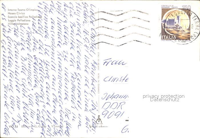 old postcard Vicenza Museo Civico Teatro Olimpico Loggio Palladiana postalisch gelaufen Erhaltung siehe scans