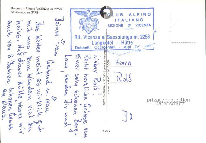 old postcard Vicenza Sassolungo Langkofel-Huette postalisch gelaufen Erhaltung siehe scans