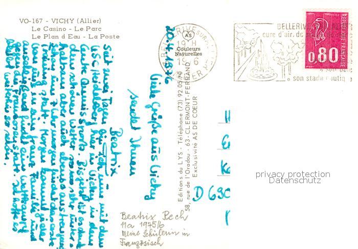 13483003 carte postale Vichy Allier Casino Park postalisch gelaufen Erhaltung siehe scans [KathaD81] KatCode: 11170003303310