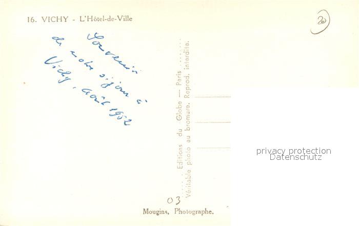 13493715 Vichy Allier Hotel de Ville postalisch nicht gelaufen Erhaltung siehe scans [WerneD78] KatCode: 11170003303310