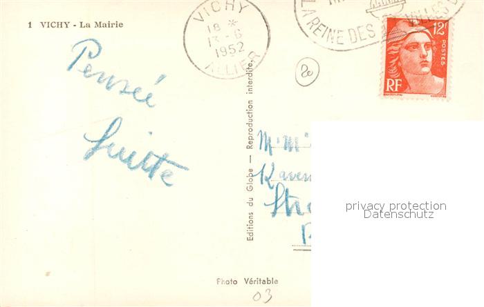 13489940 carte postale Vichy Allier La Mairie postalisch gelaufen Erhaltung siehe scans [FriedD77] KatCode: 11170003303310