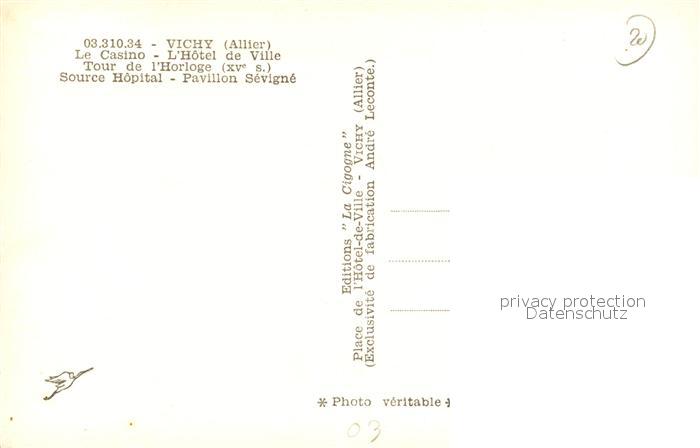13493716 Vichy Allier Le Casino Hotel de Ville Tour de l’Horloge Source Hopital Pavillon Sevigne postalisch nicht gelaufen Erhaltung siehe scans [WerneD78] KatCode: 11170003303310