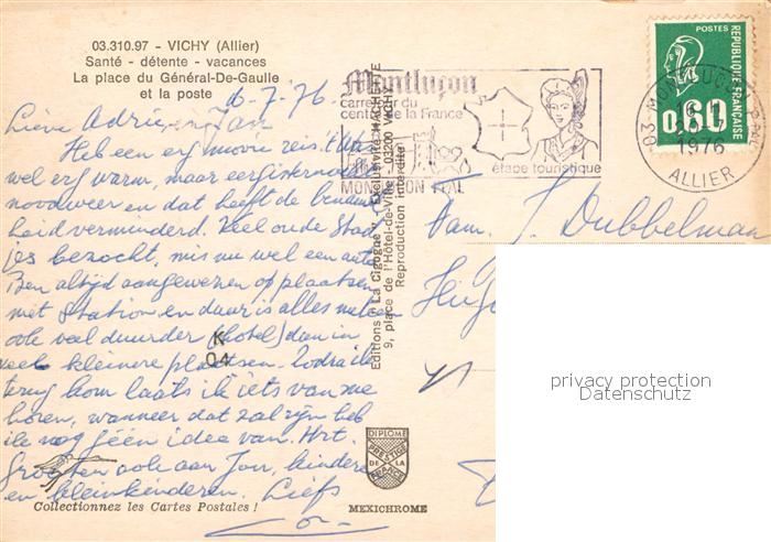 12974291 carte postale Vichy Allier Place du Generale De Gaulle postalisch gelaufen Erhaltung siehe scans [LiesaD40] KatCode: 11170003303310