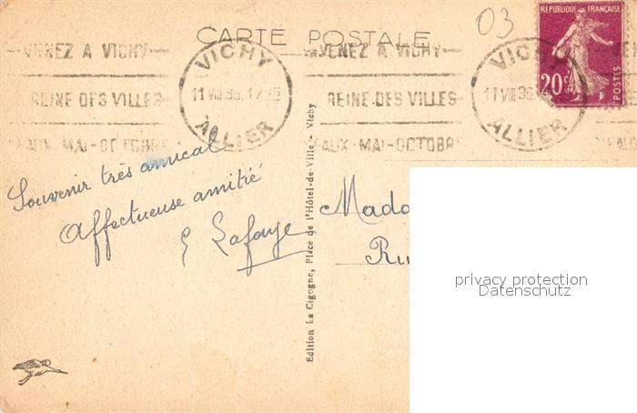 13572369 carte postale Vichy Allier Vue generale prise en avion Les Quais de l’Allier L’Etablissement Thermal postalisch gelaufen Erhaltung siehe scans [WerneD78] KatCode: 11170003303310