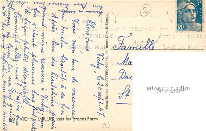 13492783 carte postale Vichy Allier Vue vers les grands Parc postalisch gelaufen Erhaltung siehe scans [FriedD77] KatCode: 11170003303310