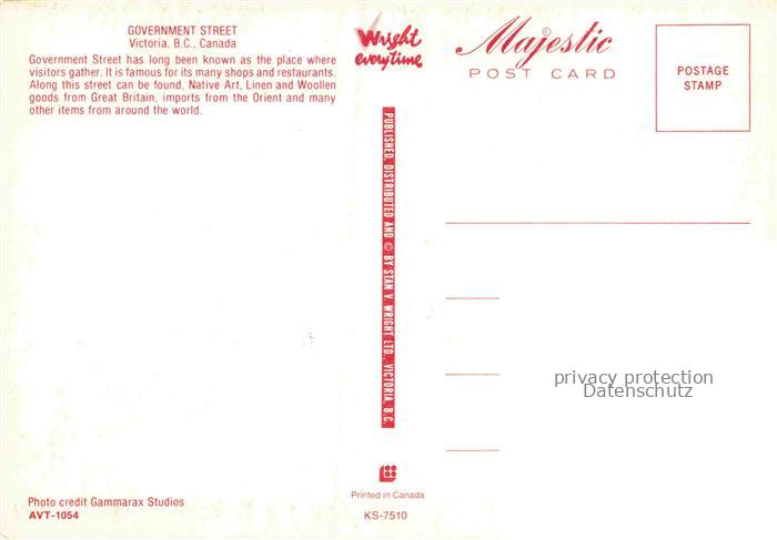 74121425 VICTORIA British Columbia Canada Government Street postalisch nicht gelaufen Erhaltung siehe scans [WerneD78] KatCode: 14110