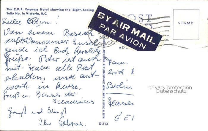 old postcard Victoria British Columbia Empress Hotel postalisch gelaufen Erhaltung siehe scans