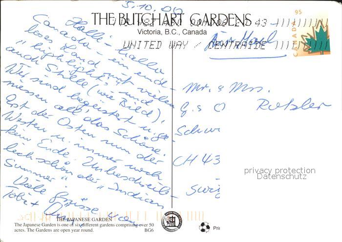 old postcard Victoria British Columbia The Butchart Gardens postalisch gelaufen Erhaltung siehe scans [WerneD78 kt117box]