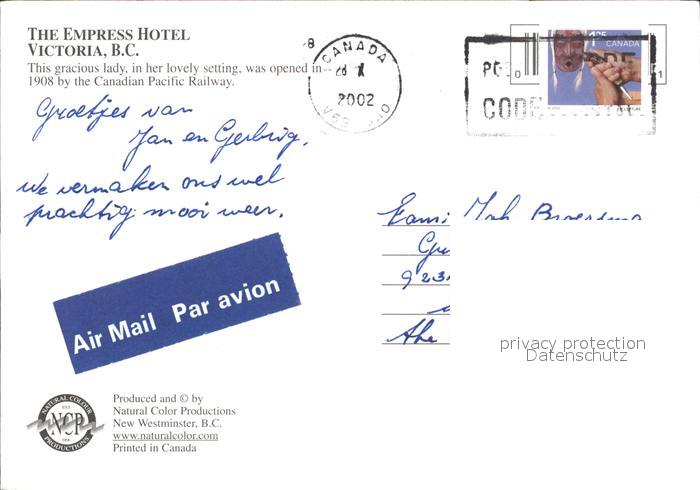 old postcard Victoria British Columbia The Empress Hotel postalisch gelaufen Erhaltung siehe scans