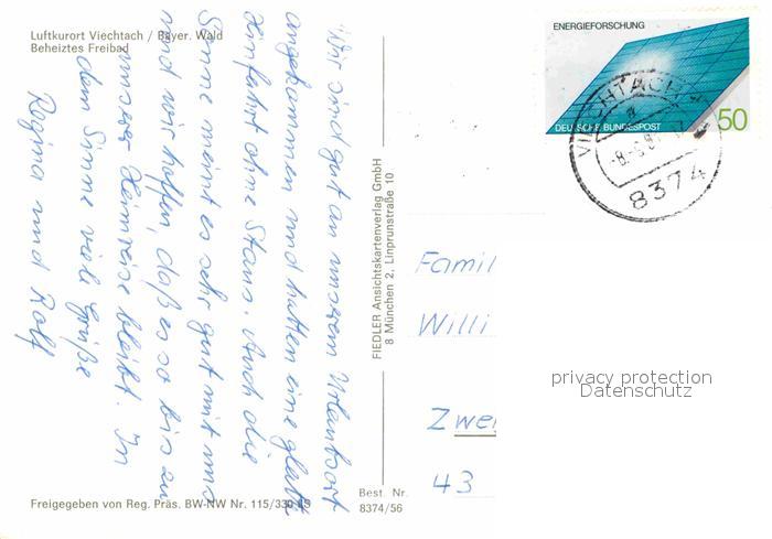 72684723 alte Postkarte Viechtach Bayerischer Wald Fliegeraufnahme Freibad postalisch gelaufen Erhaltung siehe scans [AndreD76] KatCode: 11110009276144