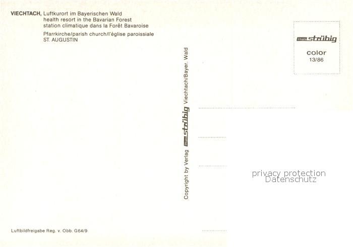 73622407 Viechtach Bayerischer Wald Fliegeraufnahme mit Pfarrkirche St Augustin postalisch nicht gelaufen Erhaltung siehe scans [WerneD78] KatCode: 11110009276144